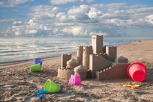 Cząsteczki wody działają jak klej i przytrzymują ziarenka piasku. Dzięki temu mokry piasek można formować