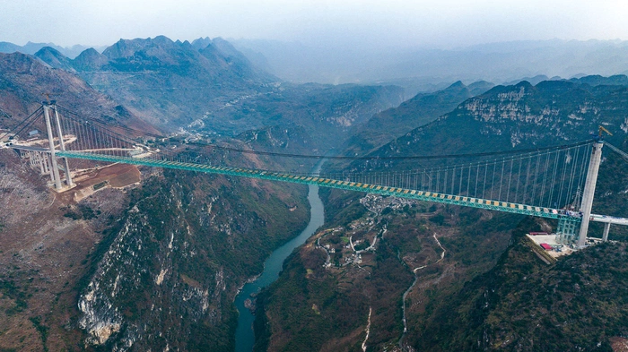 Chińska, górska prowincja Kuejczou jest jedną z biedniejszych w kraju. Ma jednak sporo niezwykłych mostów. Prawie 50, najwyższych na świecie, znajduje się właśnie tam. W sumie w prowincji istnieje lub jest w budowie 32 tysiące przepraw. Najnowszy rekordzista, most Huajiang Canyon Bridge, odebrał tytuł swojemu sąsiadowi niższemu o ok. 60 metrów.
